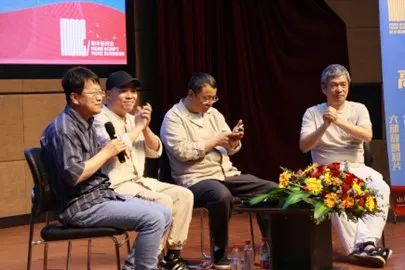 终审评委会的映后交流过程中,孟中、张献民、高雄杰三位嘉宾热情回答了同学们提出的一系列问题。期间,同学们踊跃提问,提出了许多关于电影方面的问题,三位嘉宾耐心地一一回应,与同学们积极互动,并结合专业知识和自身经验分享了看法,现场气氛达到了高潮。最后,由魏晓军上台进行简单的总结,结束了此次的展映活动。
