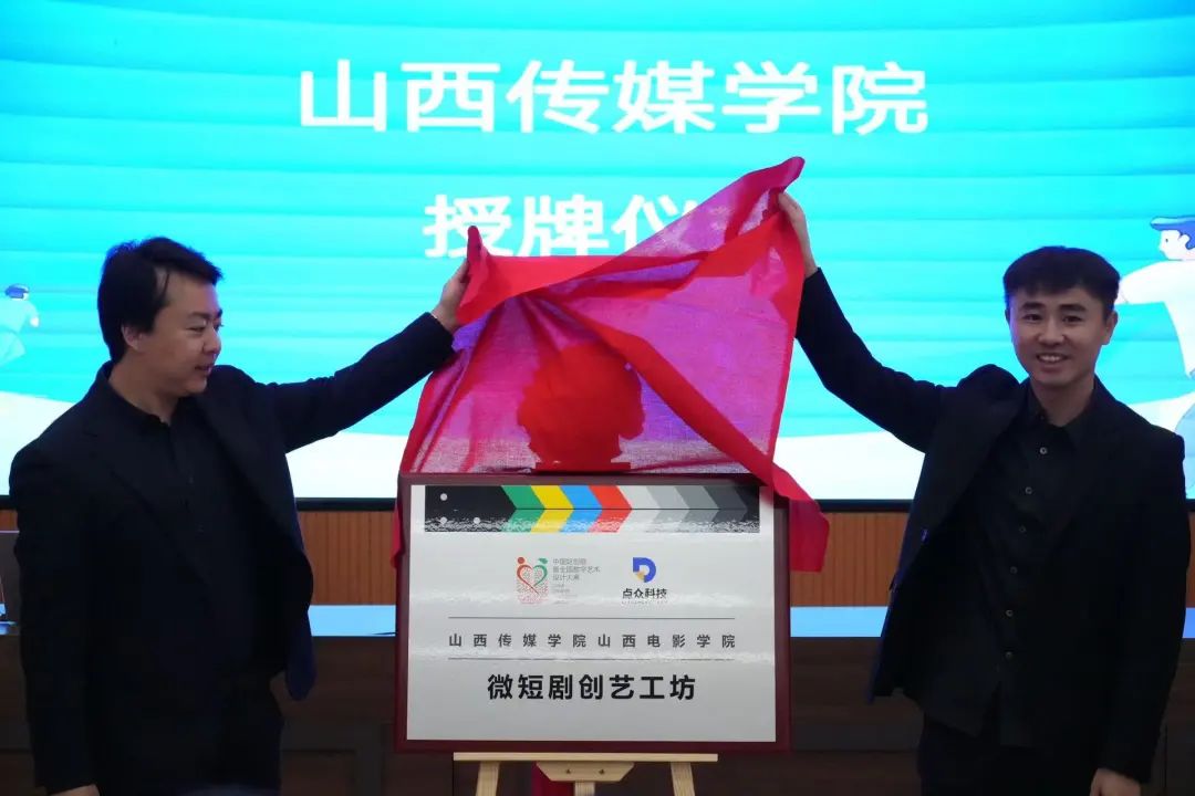 圆桌论坛上,各位行业专家自由发言,为学院戏剧影视学科如何取得更好发展建言献策。国内最大的微短剧平台点众科技负责人路升,为太阳集团tyc33455颁发了“微短剧创艺工坊”的牌匾。