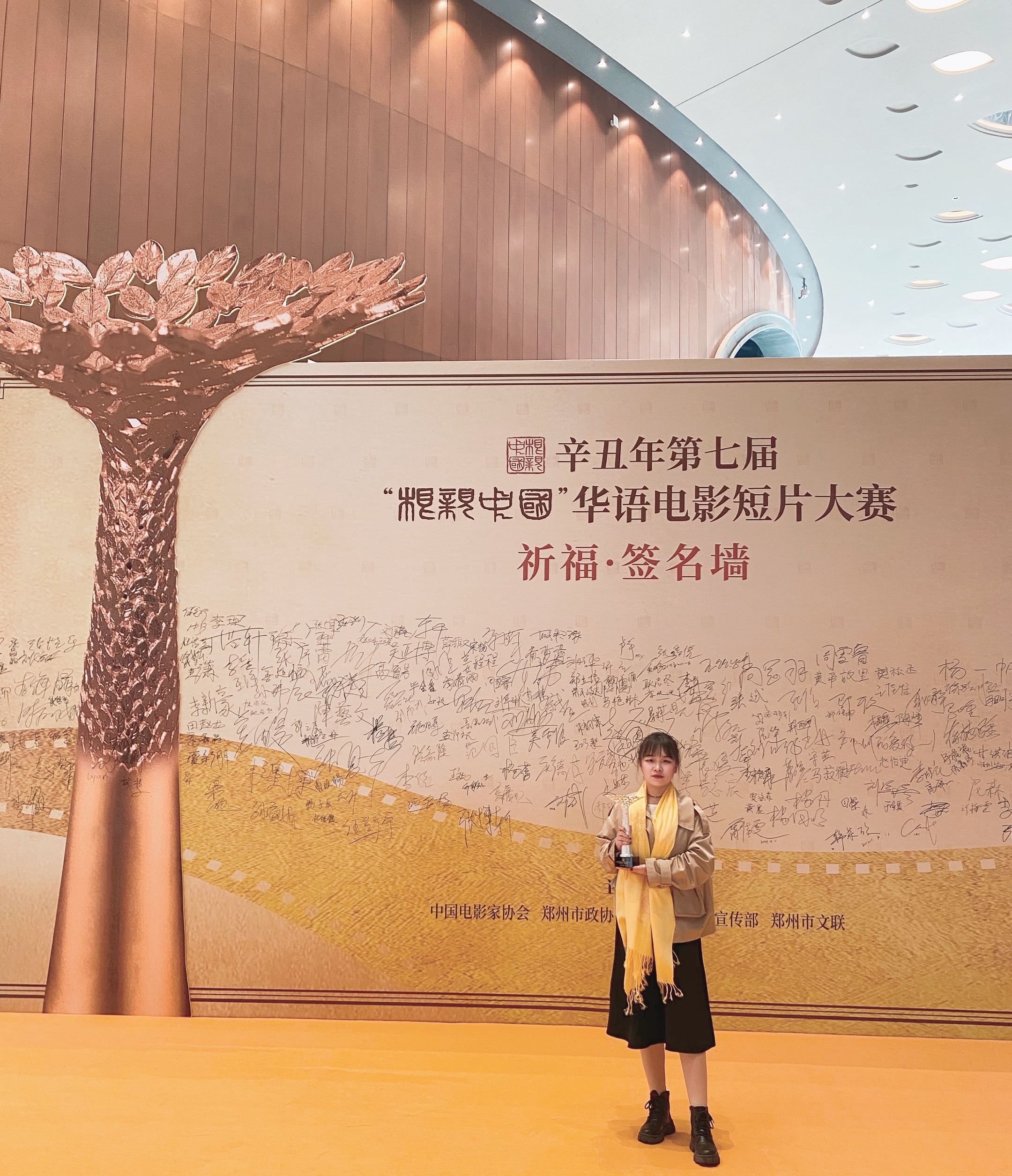 下图为16级广播电视编导专业王亚茹同学在颁奖现场