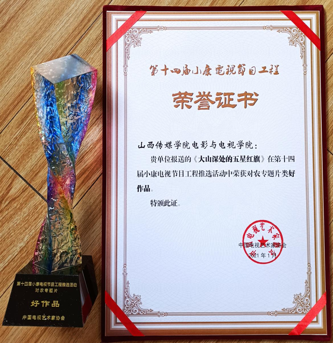 图片(《大山深处的五星红旗》荣誉证书、获奖奖杯)