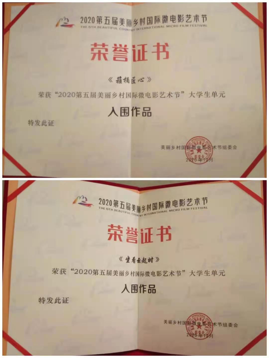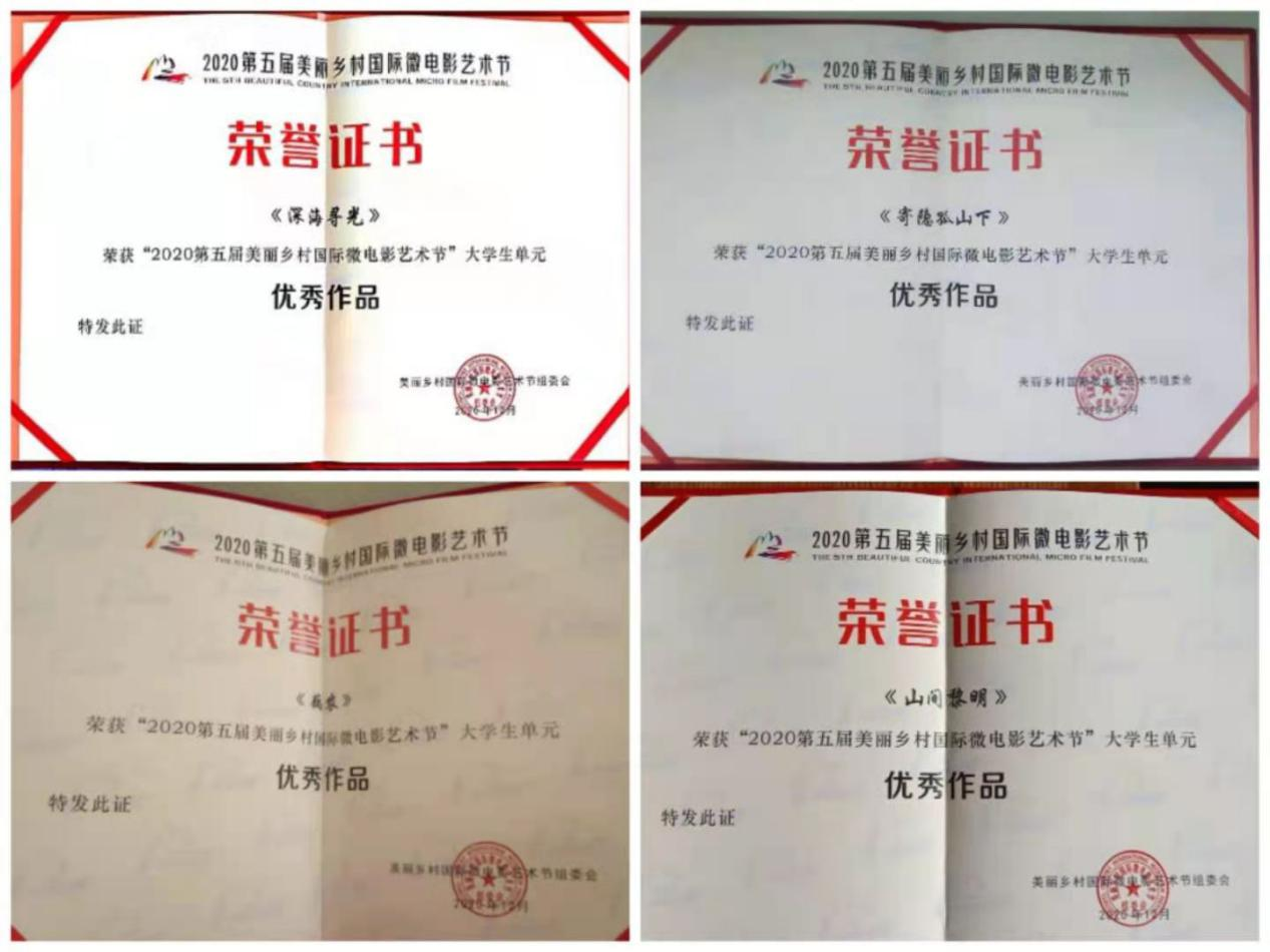 近日,第五届美丽乡村国际微电影艺术节在山东青岛举办颁奖典礼,我校电影与电视学院电视编导方向师生在此次电影艺术节中取得亮眼成绩,共有8部作品获奖。其中有2部作品荣获最佳纪录片奖,分别为:马臻宇老师指导的《寻找扎西卓玛》(主创杨钰娇等)获得大学生单元最佳纪录片奖;秦秀宇老师指导的《沉罟捕冬》(主创冷雨晴等)获得美丽乡村单元最佳纪录片奖;有4部作品荣获优秀作品奖,分别是秦秀宇老师指导的《藕农》(主创刘俊良等)、《深海寻光》(主创李淑芳等)、《山间黎明》(主创曹沁馨等)、《寄隐孤山下》(主创徐季洁等);有2部作品获得入围作品奖,分别是秦秀宇老师指导的《坐看云起时》(主创卞国蕊等)、《箍桶匠心》(主创杨慧等)。