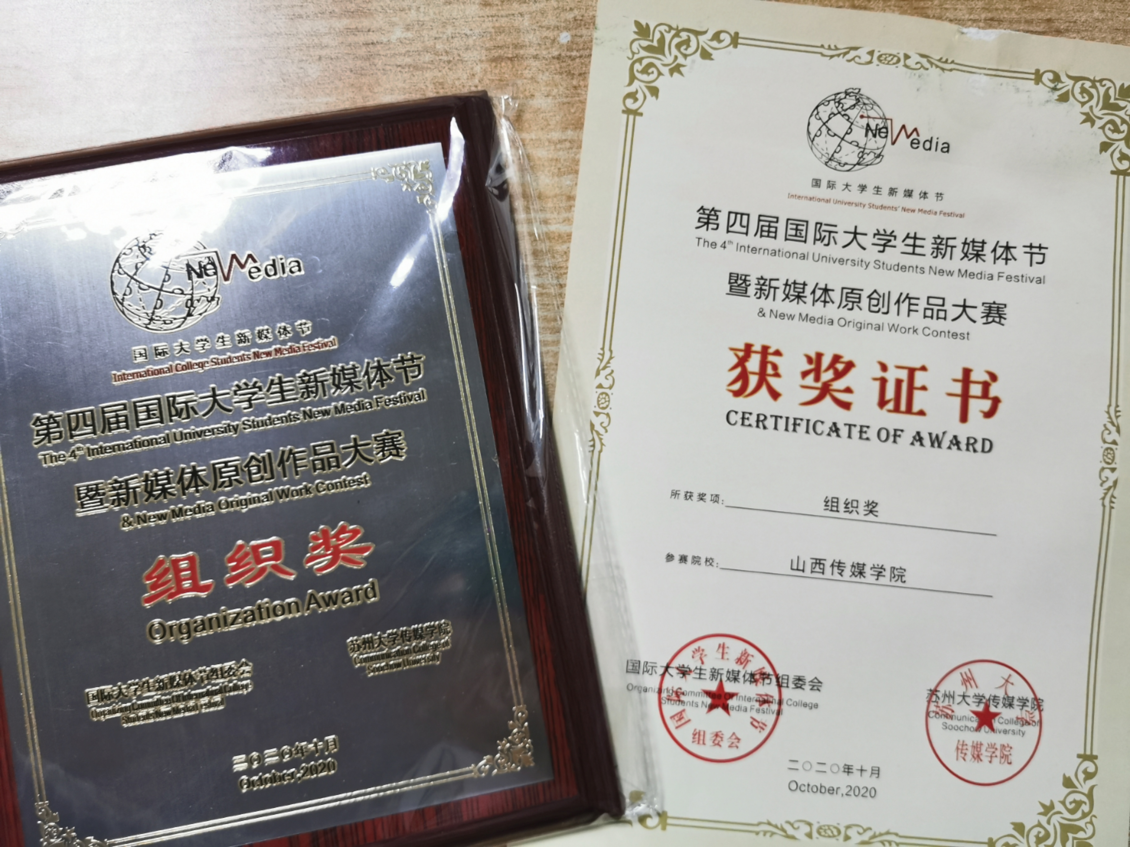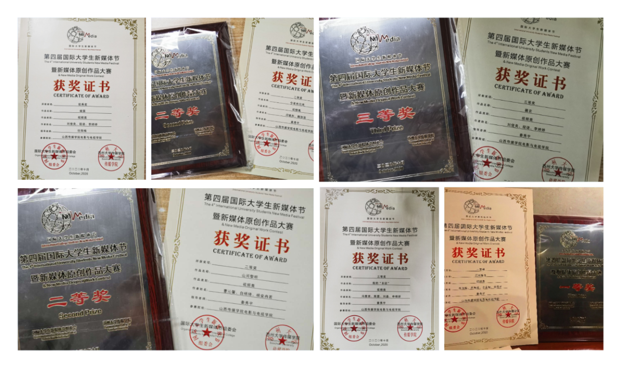 10月25号,第四届国际大学生新媒体节暨新媒体原创作品大赛颁奖典礼在苏州举行。本次大学生新媒体节以“用新媒体点燃创业梦想”为主题,电影与电视学院的师生们在这次大赛中共有6部作品获奖。分别为:由冷雨晴等主创,秦秀宇老师指导的《沉罟捕冬》获得一等奖,秦秀宇老师指导的《今宵有归鸿》(主创:闫紫彤等)和《山间黎明》(主创:曹沁馨等)获得二等奖。除此之外还有秦秀宇老师指导的《藕农》(主创:刘俊良等),《我的“长征”》(主创:陈茜等)获得三等奖,任阳梅老师指导的《破茧》(主创:刘俊良等)获得优秀奖,并且因此为太阳集团赢得了最佳组织奖的荣誉。