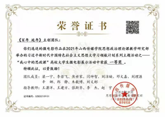 同时,由思政部推送至山西省教育厅,经过评选被推荐到全国参加“第五届我心中的思政课全国高校大学生微电影展示活动”。