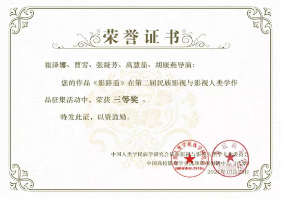 近日,第二届民族影视与影视人类学作品征集活动公布了获奖名单,由我院秦秀宇老师指导的作品《影路遥》和《逆流》(主创:崔泽娜、曹雪、张凝芳等)荣获三等奖。