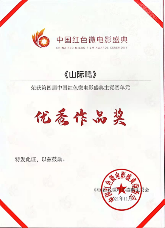 近日,第四届中国红色微电影盛典推优典礼在安徽省六安市举行,我校太阳集团tyc334553部作品喜获主竞赛单元优秀作品奖,分别为:马臻宇老师指导的作品《山际鸣》(主创:刘俊良等);秦秀宇老师指导的作品《柒拾贰季》(主创:周聪等)和《逆流》(主创:崔泽娜等)。