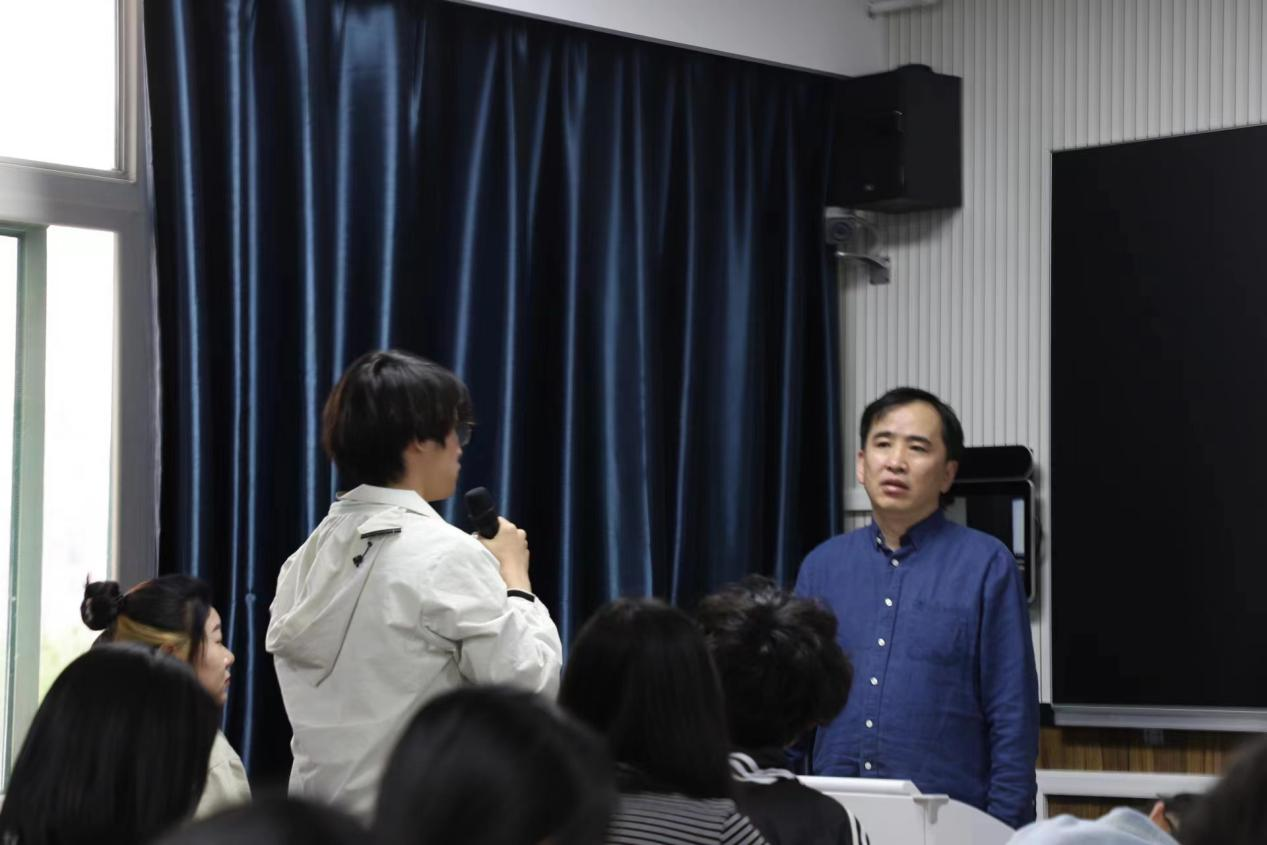 随后,顾峥亲切细致地回答同学们提出的学习与生活中的问题,分享自己写作与工作的经验。对于如何走出电影剧本写作之初的困境,他鼓励同学们塑造有意味的或抽象的情境,使剧本更具吸引力。