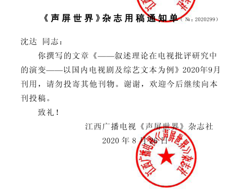 今年在学习上最大的收获就是本人撰写的论文被《声屏世界》杂志收录,虽然只是省级普刊,不过这只是个开始,我已经很满意了,希望未来自己的学习成果能越来越多,越来越好。
