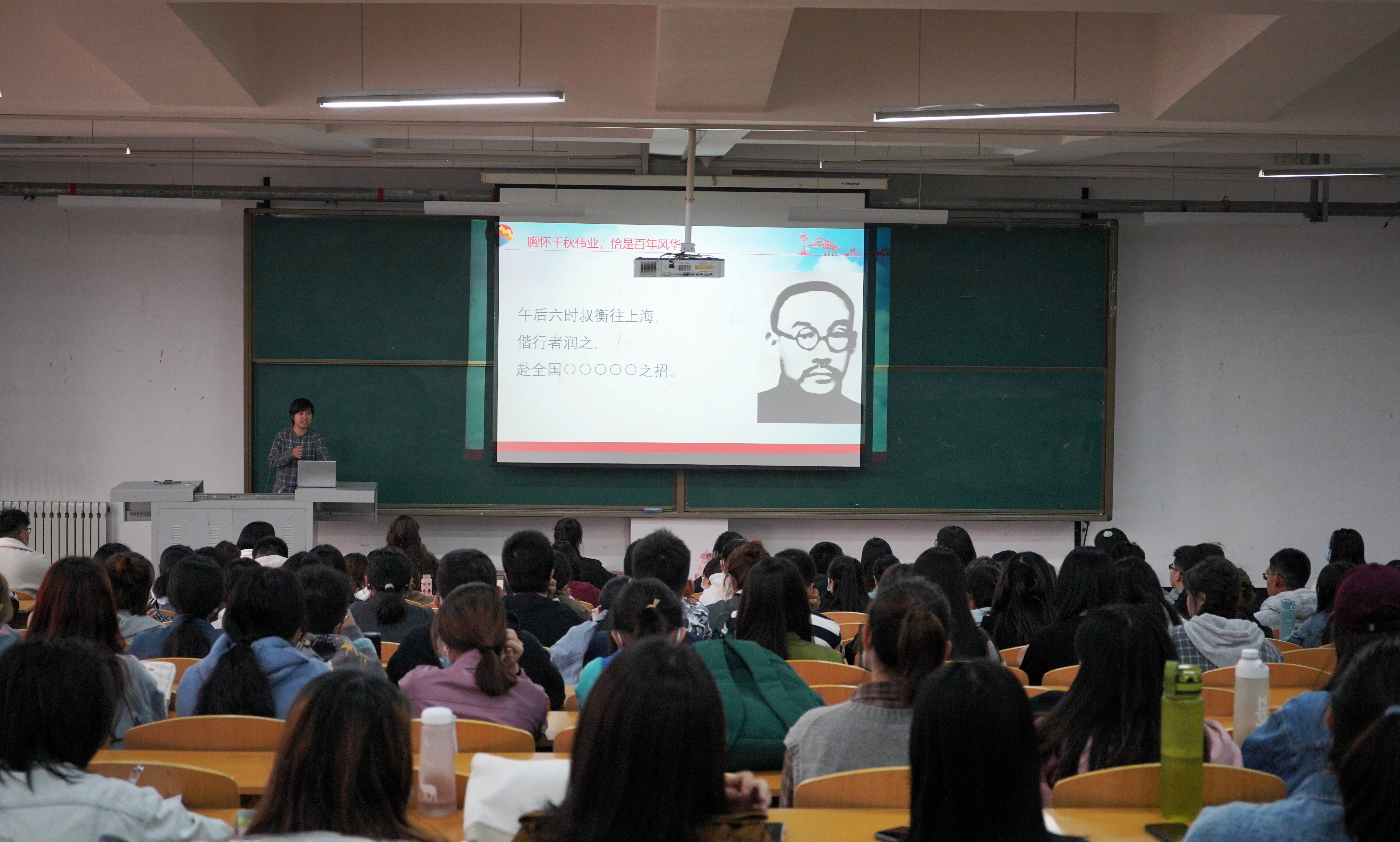 会上,刘老师以中共一大为主线,讲述了中国共产党的成立及初期发展进程。20世纪20年代的上海,社会形势错综复杂,1921年,毛泽东与何叔衡从长沙奔赴上海,参加中共一大的召开。在第六次会议时,因密探暗访,会议被迫中止。直至后来,在嘉兴南湖的游船上继续第七次会议。会议上通过了党的第一个纲领,第一个决议,并正式确立党为中国共产党。在这艘普通的游船上,中国共产党开辟了一个惊天动地的新时代。
